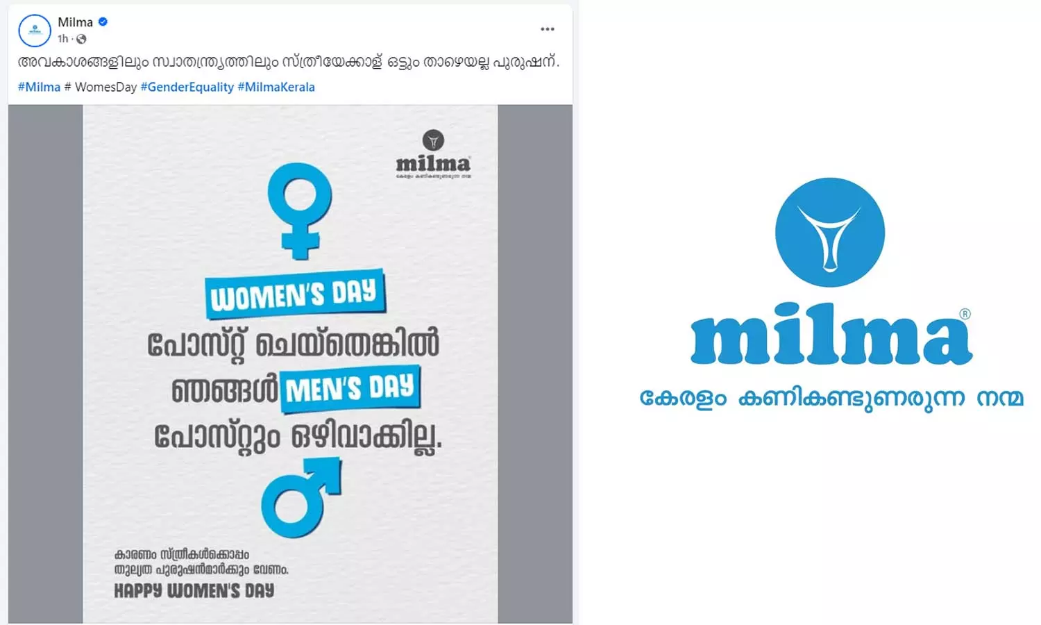 കോഴിക്കോട്: വനിതാദിനത്തിൽ മിൽമ പുറത്തിറക്കിയ ആശംസകാർഡ് ചർച്ചയാകുന്നു. ‘വിമൻസ് ഡേ പോസ്റ്റ് ചെയ്തെങ്കിൽ ഞങ്ങൾ മെൻസ് ഡേ പോസ്റ്റും ഒഴിവാക്കില്ല, കാരണം സ്ത്രീകൾക്കൊപ്പം തുല്യത പുരുഷന്മാർക്കും വേണം’ എന്ന പേരിൽ പുറത്തിറക്കിയ സോഷ്യൽമീഡിയ പരസ്യമാണ് ചർച്ചയായിരിക്കുന്നത്.
