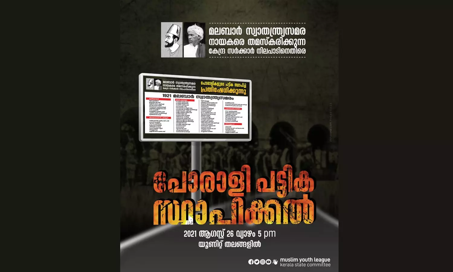 മലബാര് സമരത്തെ തമസ്കരിക്കാനുള്ള നീക്കം; പോരാളികളുടെ പേരുകള് സ്ഥാപിച്ച് യൂത്ത്ലീഗ് പ്രതിഷേധം