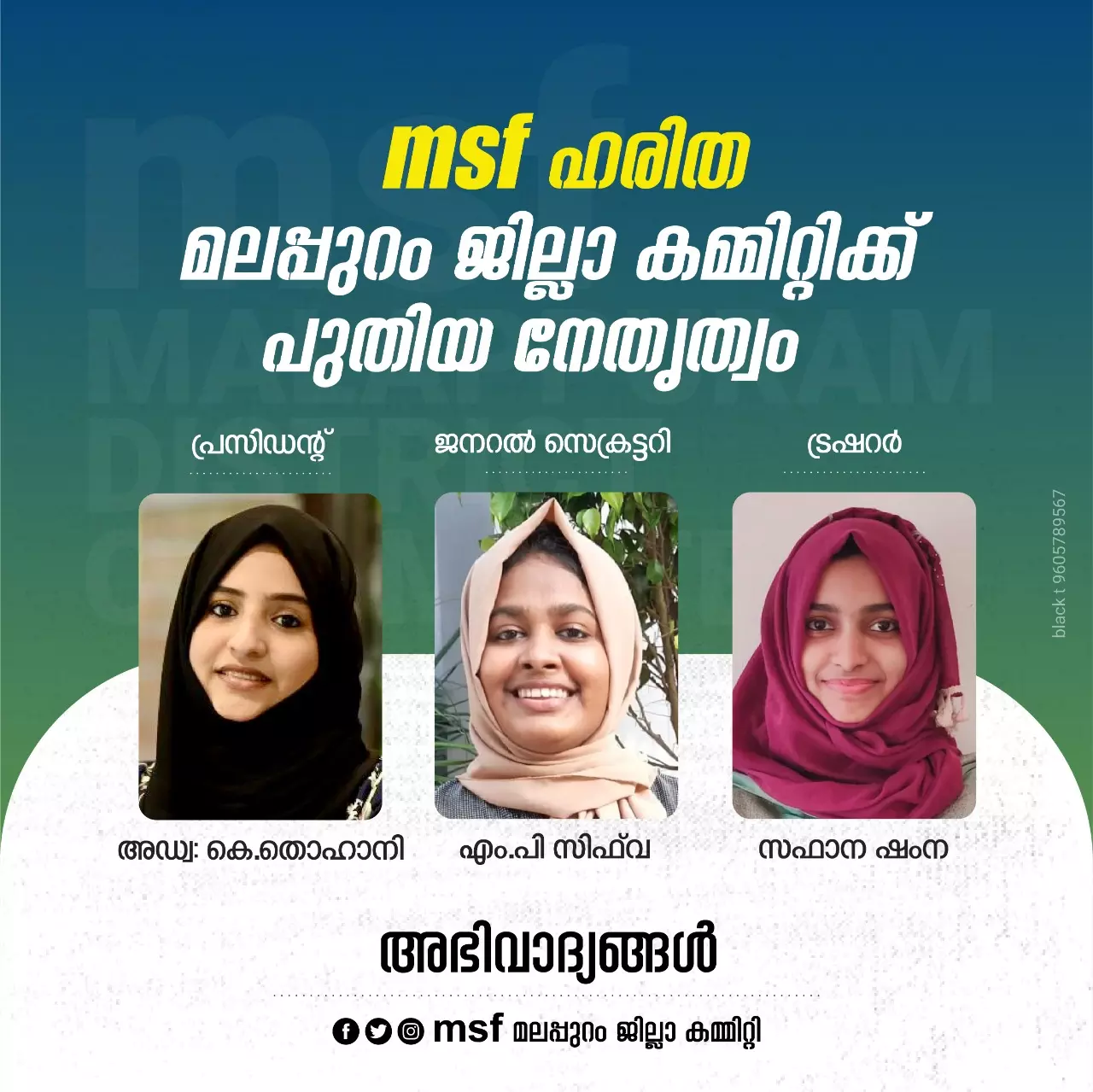 |എം.എസ്.എഫ് മലപ്പുറം ജില്ലാ കമ്മിറ്റിയാണ് പുതിയ ഹരിത കമ്മിറ്റിയെ പ്രഖ്യാപിച്ചത്