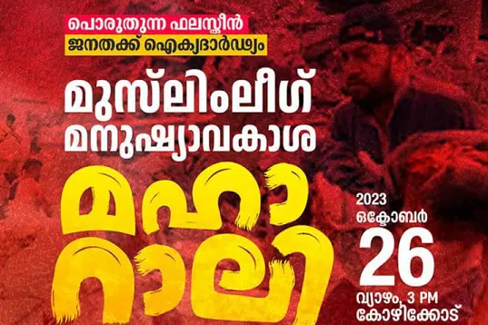 |ഇന്ത്യയിലെ ഏറ്റവും വലിയ ഫലസ്തീന് ഐക്യദാർഢ്യ പരിപാടിയായി റാലി മാറുമെന്നാണ് ലീഗിന്റെ പ്രതീക്ഷ