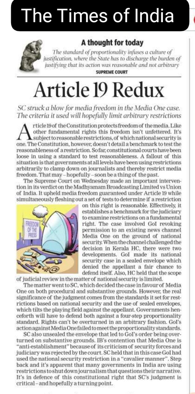 മാധ്യമ സ്വാതന്ത്ര്യത്തെ ഉയര്ത്തിപ്പിടിക്കുന്ന വിധി: ടൈംസ് ഓഫ് ഇന്ത്യ