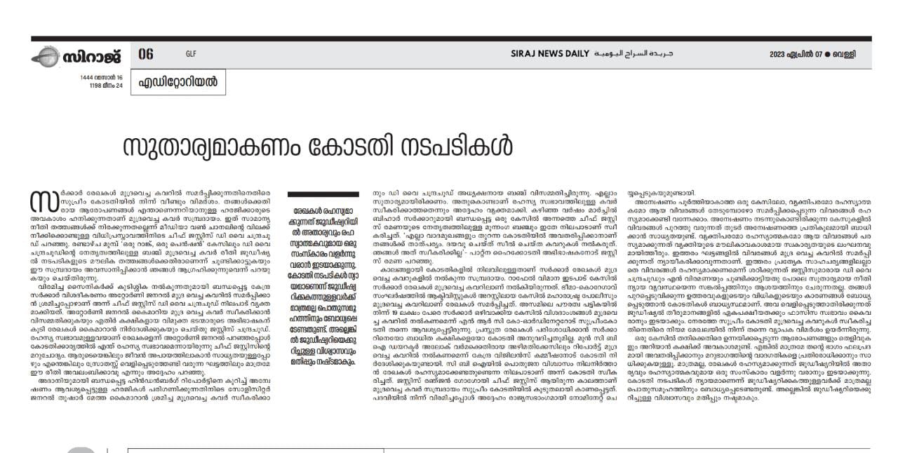 സുതാര്യമാകണം കോടതി നടപടികള്: സിറാജ്