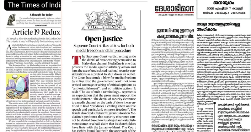 മീഡിയവണ് വിധിയില് വിവിധ മാധ്യമങ്ങളില് വന്ന മുഖപ്രസംഗം