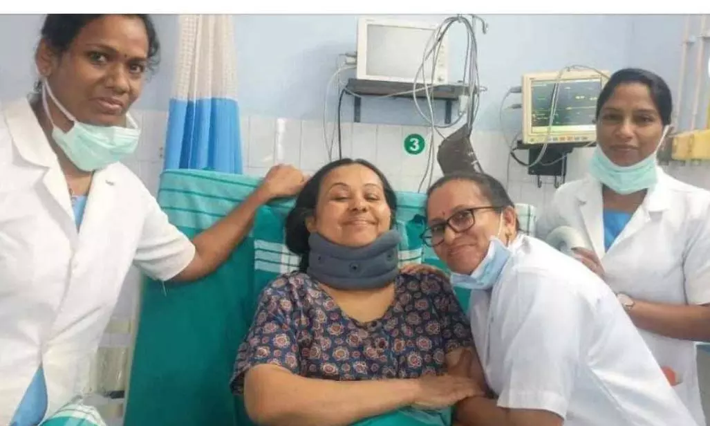 ഞങ്ങൾ നിർബന്ധിച്ചു ഒരു ഇഡ്ഡലി കഴിപ്പിച്ചു .ആഹാരം കൊടുത്തതിനു ശേഷം കിടത്തുന്നതിനു മുൻപ് ഞങ്ങൾ ഐസിയുവിലെ സിസ്റ്റേഴ്സ് ഒരു ഫോട്ടോ എടുത്തോട്ടെ എന്ന് മിനിസ്റ്ററോട് ചോദിച്ചു. മിനിസ്റ്റർ ആകട്ടെ എന്ന് പറഞ്ഞു മിനിസ്റ്റർ അനുഭവിക്കുന്ന ശാരീരികവും മാനസികവുമായ വേദന , ശരീരത്തിനേറ്റ ക്ഷതം ഇവയൊക്കെ നേരിൽ കാണുന്ന ഞങ്ങൾ പ്രിയപ്പെട്ട മിനിസ്റ്ററോട് പറഞ്ഞു ഒന്നും വിഷമിക്കേണ്ട ഞങ്ങൾ എല്ലാവരും കൂടെ ഉണ്ട് .