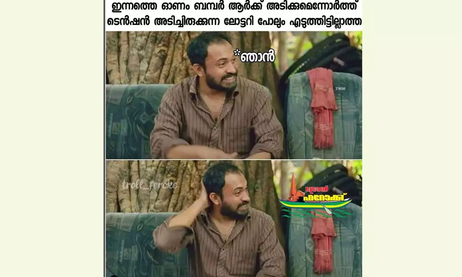 ഒന്നാം സമ്മാനം കിട്ടിയാൽ ടിവിക്കാരെയും പത്രക്കാരെയും ഫേസ് ചെയ്യണമെന്നല്ലോ ഓർത്ത് ടെൻഷനടിച്ച് ഓണം ബംബർ എടുക്കാത്ത ഞാൻ എന്നായിരുന്നു ഒരു ട്രോൾ..