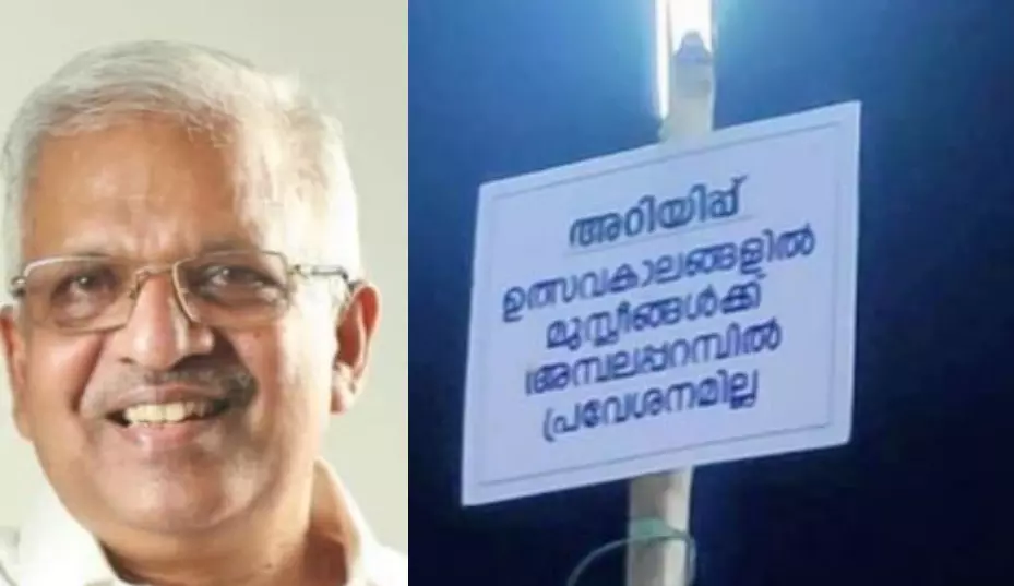 അതേസമയം വിഷു വിളക്ക് ആഘോഷ സമയത്ത് കഴിഞ്ഞ 75 വര്ഷമായി അത്തരത്തില് ബോര്ഡ് വെയ്ക്കാറുണ്ടെന്ന് ക്ഷേത്ര കമ്മറ്റി ഭാരവാഹികള് അറിയിച്ചെന്ന് ദേശാഭിമാനി റിപ്പോര്ട്ട് ചെയ്തു. എന്നാല് ആരെയും ബോധപൂര്വം വിലക്കാറില്ല. ഒരു തരത്തിലുമുള്ള മതസ്പര്ധയുടെയും പ്രശ്നം ഇതില് ഇല്ലെന്നും ക്ഷേത്ര ഭാരവാഹികള് പറഞ്ഞെന്ന് ദേശാഭിമാനിയുടെ റിപ്പോര്ട്ടില് പറയുന്നു.
