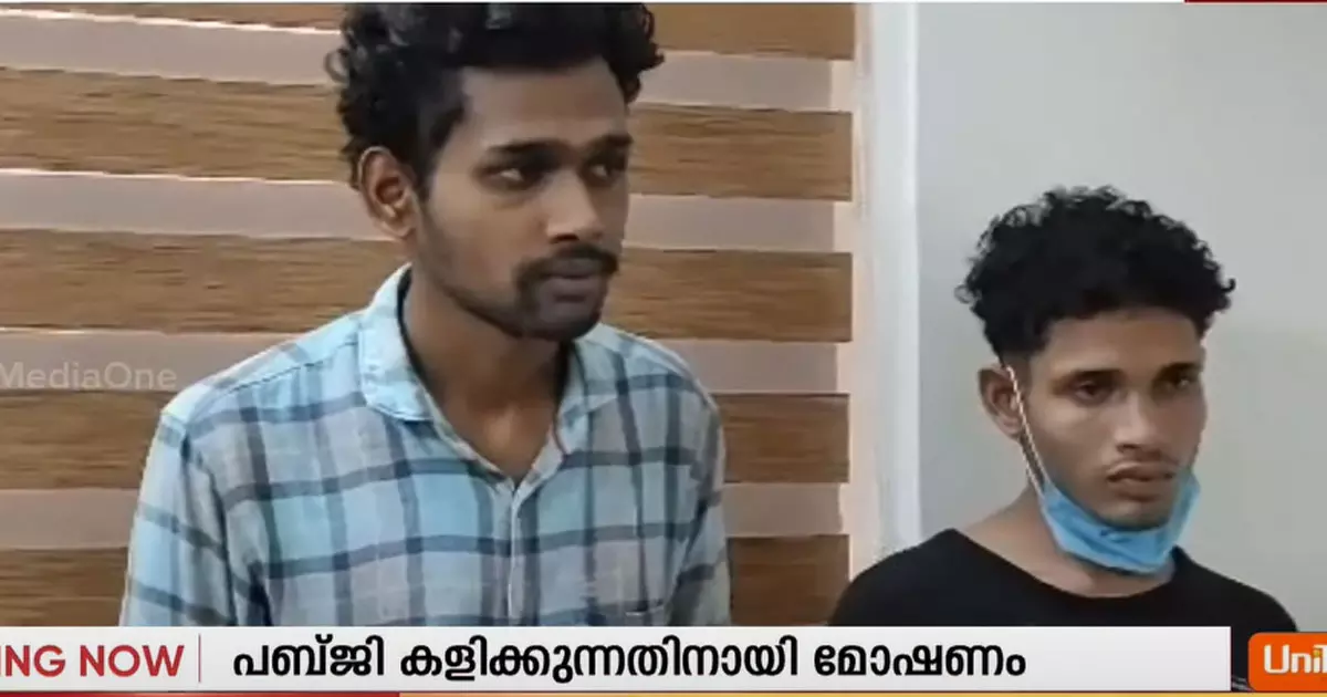 കിഴക്കഞ്ചേരി വാൽക്കുളമ്പ് പിട്ടുകാരി എംഎംയുപി സ്കൂളിൽ നിന്ന് മൂന്നു ലാപ്പ്ടോപ് മോഷണം പോയതായി വടക്കഞ്ചേരി പൊലീസിന് പരാതി ലഭിച്ചിരുന്നു. കമ്പ്യൂട്ടർ റൂം കുത്തിതുറന്നാണ് മോഷണം നടന്നത്. ഇതുമായി ബന്ധപ്പെട്ട് അന്വേഷണം നടക്കുമ്പോഴാണ് പാലക്കാടുള്ള ഒരു ഷോപ്പിൽ ലാപ്പ്ടോപ് വില്പനയ്ക്ക് എത്തിയ വിവരം പൊലീസ് അറിയുന്നത്. ഉടൻ സ്ഥലത്ത് എത്തിയെങ്കിലും ലാപ്പ്ടോപ് കൊണ്ടുവന്ന യുവാക്കളെ കിട്ടിയില്ല. പിന്നീട് ഇവരുടെ ചിത്രങ്ങൾ കേന്ദ്രീകരിച്ച് നടന്ന അന്വേഷണത്തിലാണ് വഴിയിൽ നിന്ന് രണ്ട് പേരെയും കണ്ടെത്തിയത്. വിശദമായി ചോദ്യം ചെയ്തപ്പോൾ ഓൺലൈനായി പബ്ജി കളിക്കുന്നതിനുള്ള പണം കണ്ടെത്തുന്നതിനാണ് മോഷണം നടത്തിയതെന്ന് പ്രതികൾ മൊഴി നൽകി. ഒരു ലാപ്ടോപ്പ് 4500 രൂപയ്ക്കാണ് ഇവർ വിറ്റത്. ഇത് പൊലീസ് കസ്റ്റഡിയിൽ എടുത്തു. മറ്റ് രണ്ട് ലാപ്ടോ്ുകൾ പ്രതികളുടെ കയ്യിൽ നിന്ന് കണ്ടെടുത്തു.