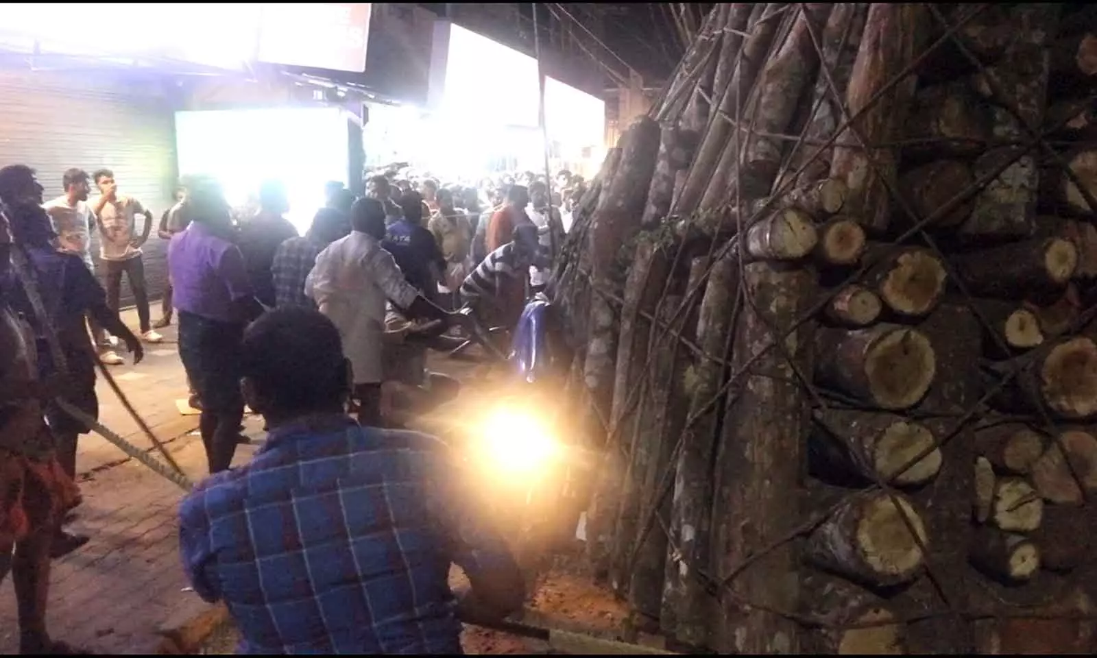 ഒരു മണിക്കൂറിലധികം തടിലോറിക്കടിയിൽ കുടുങ്ങിയ കാർ യാത്രികൻ അത്ഭുതകരമായി രക്ഷപ്പെട്ടു
