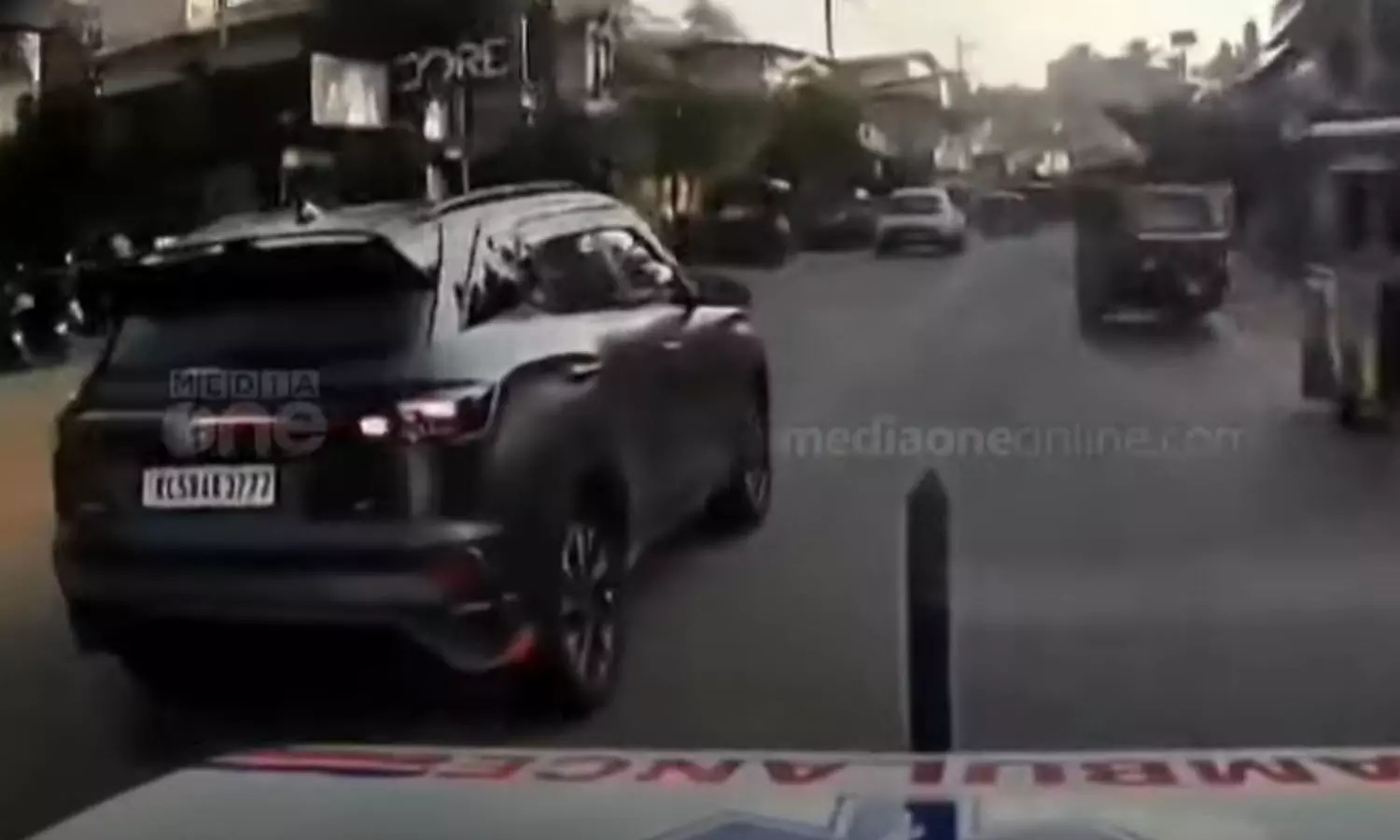 അരമണിക്കൂറോളം ആംബുലൻസിന് തടസമുണ്ടാക്കി കാർ മുന്നിൽ തുടർന്നു