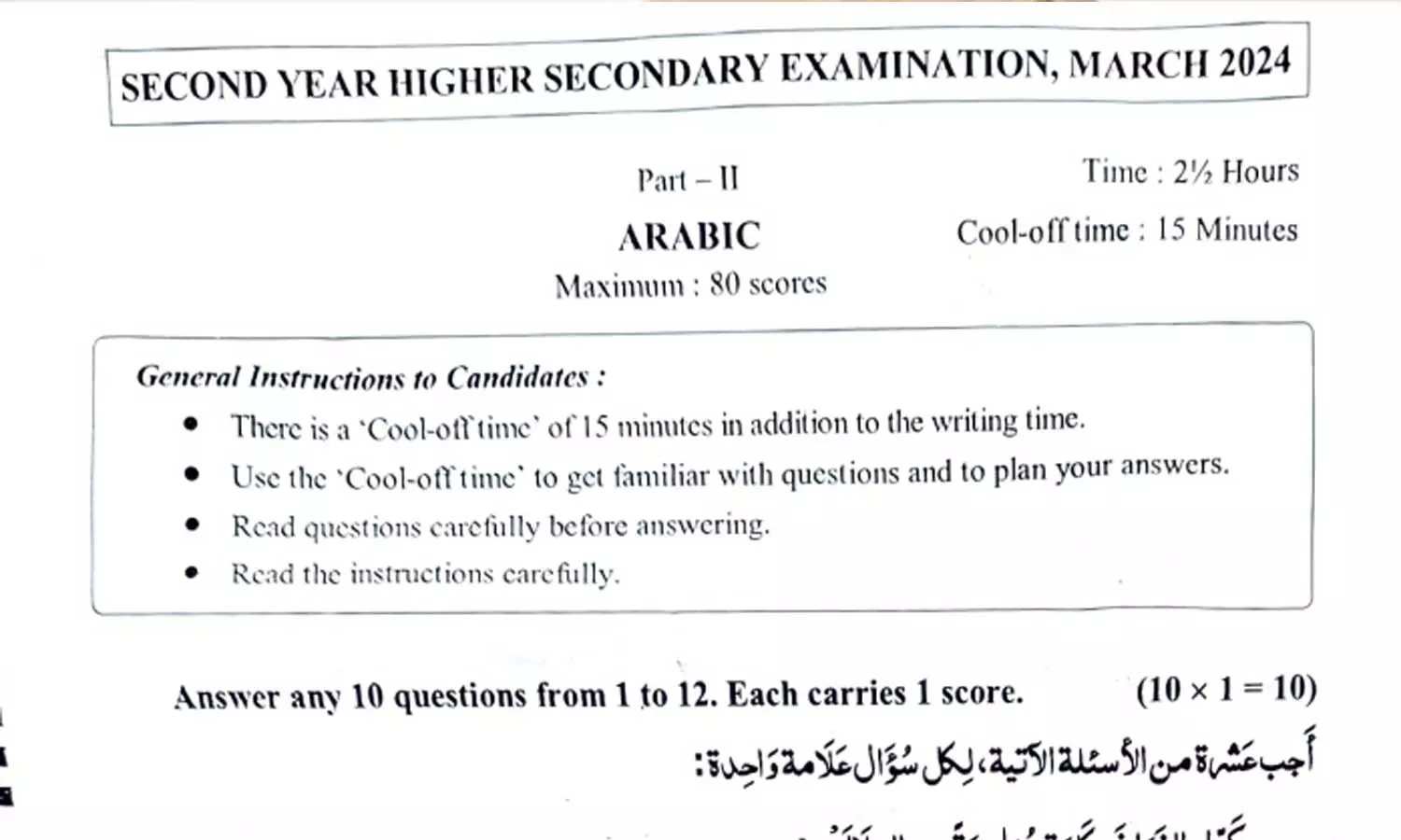 പ്ലസ് ടു അറബിക് ചോദ്യപേപ്പറിൽ കോപ്പിയടി