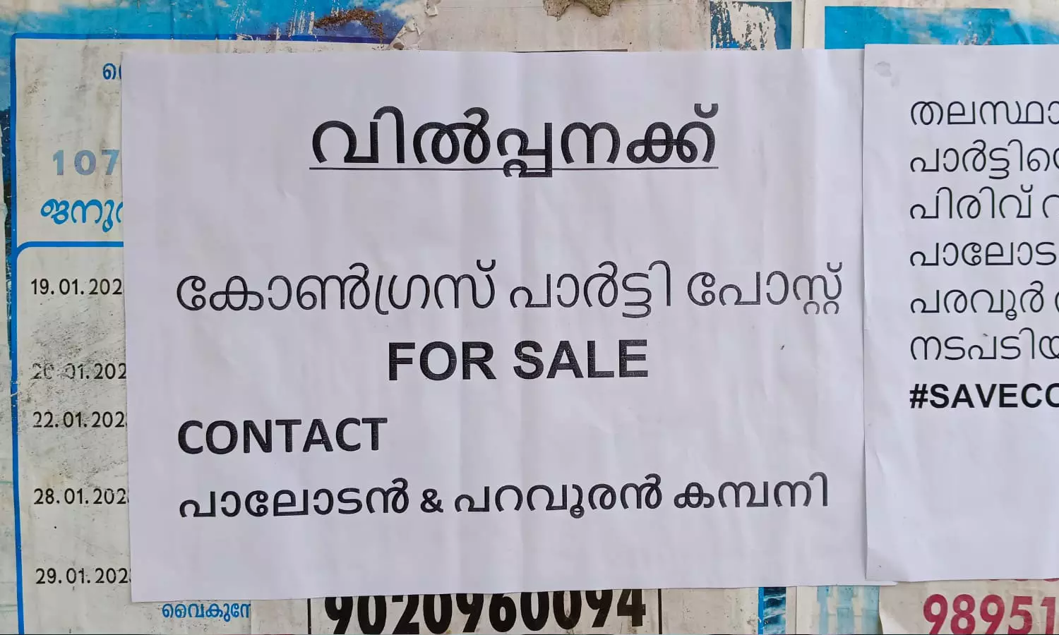 'കോൺഗ്രസ് പാർട്ടി പോസ്റ്റുകൾ വിൽപനക്ക്': പാലോട് രവിക്കെതിരെ തലസ്ഥാനത്ത് പോസ്റ്ററുകൾ