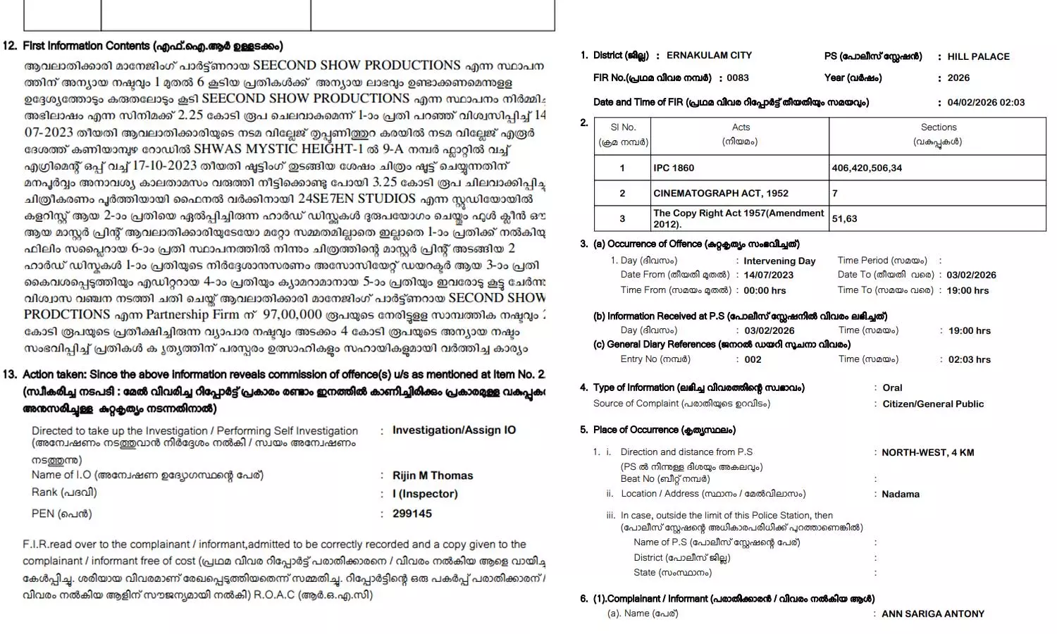 സംവിധായകനടക്കം ആറ് പേർക്കെതിരെയാണ് ഹിൽ പാലസ് പൊലീസ് കേസെടുത്തത്