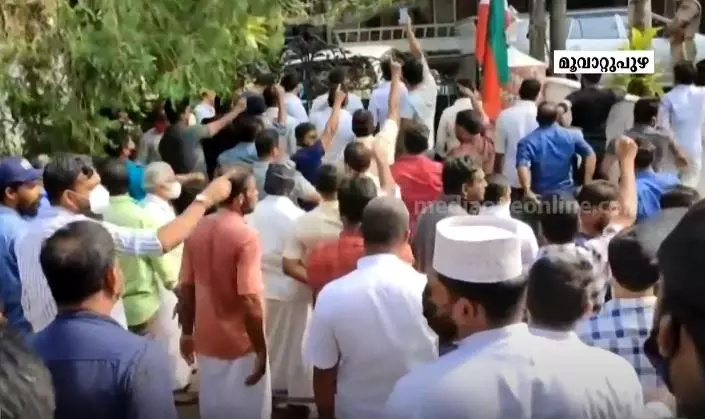 |വീടിന് പുറത്ത് പ്രവര്ത്തകർ പ്രതിഷേധിക്കുകയാണ്.