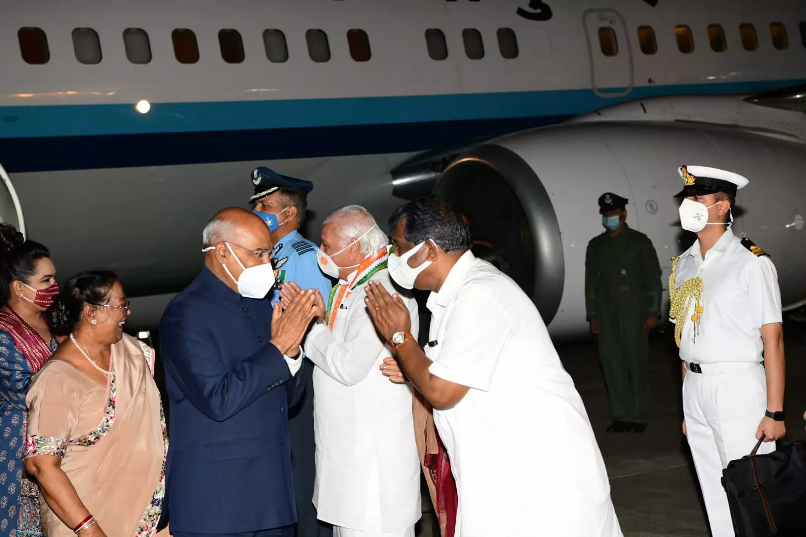 രാഷ്ട്രപതി രാംനാഥ് കോവിന്ദ് ഒരു ദിവസത്തെ സന്ദർശനത്തിന് കേരളത്തിൽ എത്തി. ഗവർണർ ആരിഫ് മുഹമ്മദ് ഖാന്, മന്ത്രി ആന്റണി രാജു, മേയർ അടക്കമുള്ളവർ എത്തി രാഷ്ട്രപതിയെ സ്വീകരിച്ചു.