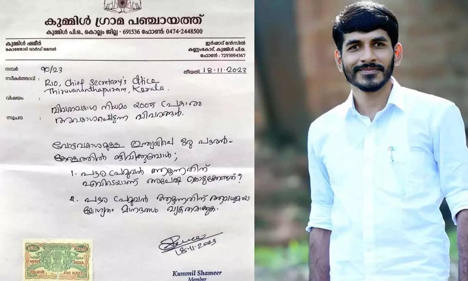 നവകേരള സദസ്സിൽ മുഖ്യമന്ത്രിക്കൊപ്പം പൗരപ്രമുഖർക്ക് പ്രഭാതഭക്ഷണമൊരുക്കിയ പശ്ചാത്തലത്തിലായിരുന്നു ഷമീർ വിവരാവകാശ നിയമപ്രകാരം വിവരങ്ങൾ തേടിയത്. പൗരപ്രമുഖൻ ആവാൻ എവിടെയാണ് അപേക്ഷ നൽകേണ്ടത്? പൗരപ്രമുഖൻ ആവാൻ ആവശ്യമായ യോഗ്യതാ മാനദണ്ഡം വ്യക്തമാക്കുക എന്നീ ചോദ്യങ്ങളാണ് ഷമീർ ഉന്നയിച്ചത്.