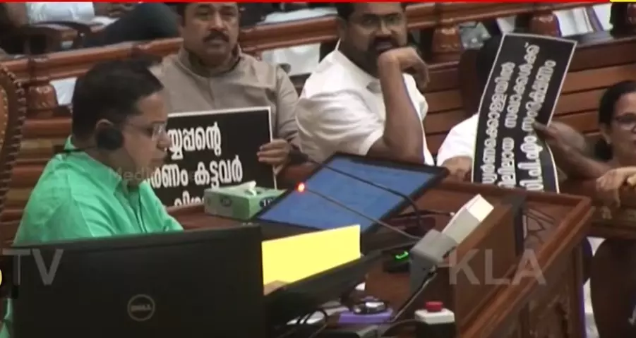 അവസാന ദിനത്തിലും പ്രതിഷേധം തുടർന്ന് പ്രതിപക്ഷം; നടുത്തളത്തിൽ കുത്തിയിരുന്നും പ്ലക്കാര്ഡ് ഉയര്ത്തിയും പ്രതിഷേധം