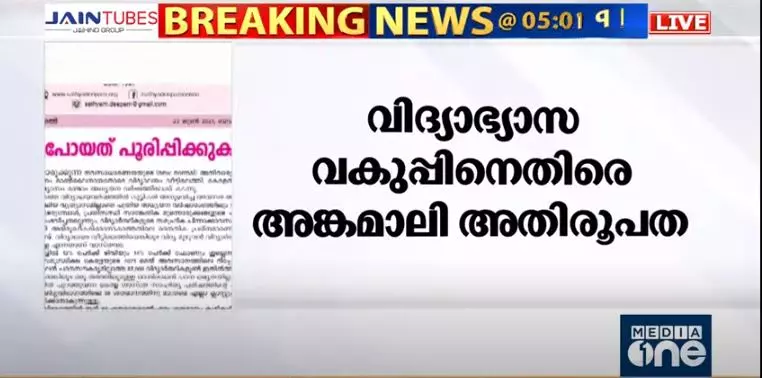 വിദ്യാഭ്യാസവകുപ്പിനെതിരെ എറണാകുളം അങ്കമാലി അതിരൂപതയുടെ മുഖപത്രമായ സത്യദീപം. സർക്കാരിന്റെ ഓൺലൈൻ വിദ്യാഭ്യാസ നയങ്ങളിൽ പാളിച്ചയുണ്ട്. ഓൺലൈൻ വിദ്യാഭ്യാസ ലഭ്യതയുടെ പ്രശ്നങ്ങൾ തുടർഭരണം ഉറപ്പാക്കിയവർ പഠിച്ചില്ല. ഓൺലൈൻ പഠനം തുടങ്ങിയ ശേഷമാണ് ജനപ്രതിനിധികൾ ഡിജിറ്റൽ സഹായവുമായി എത്തുന്നത്.