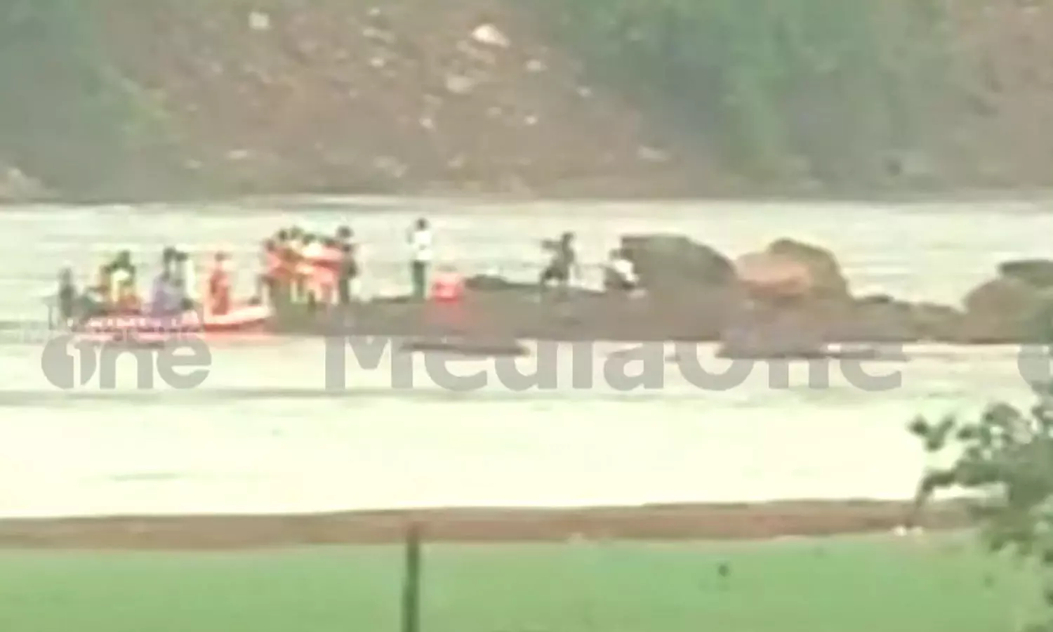 മത്സ്യത്തൊഴിലാളികളുടെ ബോട്ട് എത്തിച്ചാണ് മൺകൂനക്ക് അരികെ ഇവരെത്തിയത്. നാവികസേനയും മത്സ്യത്തൊഴിലാളികളും ഇവരുടെ കൂടെയുണ്ട്. 12 ദിവസമായി തുടരുന്ന ദൗത്യത്തിൽ ആദ്യമായാണ് പുഴയിലിറങ്ങി തിരച്ചിൽ നടത്തുന്നത്.