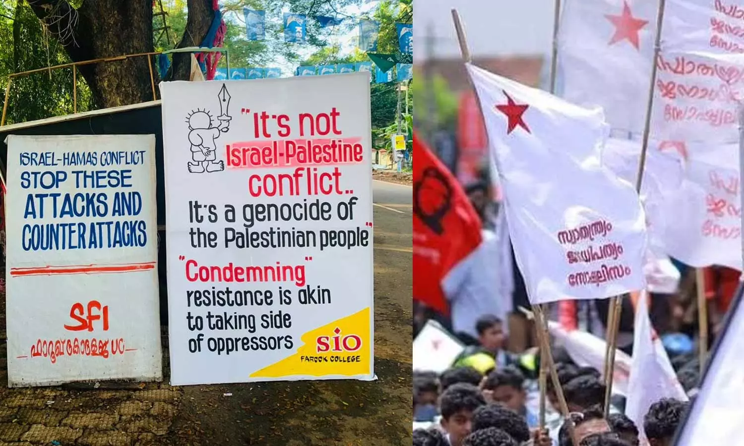 Summary: SFI calls the Gaza genocide an Israel-Hamas conflict. The banner put up by SFI Farook College unit has been criticized