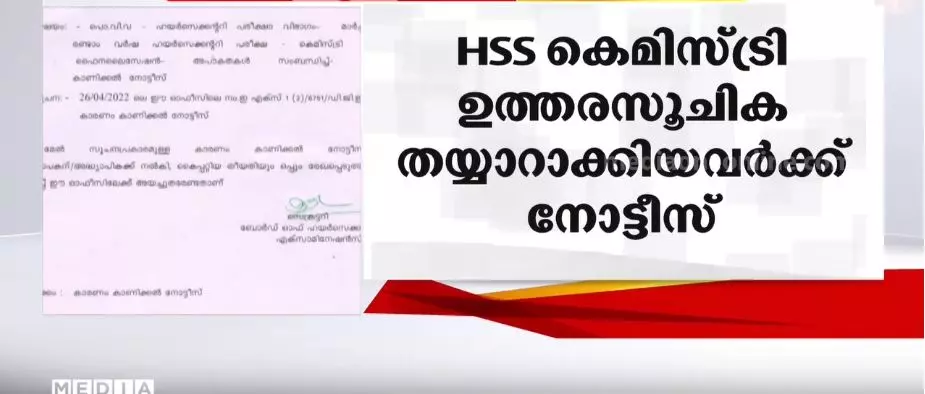 കെമിസ്ട്രി ഉത്തരസൂചിക തയ്യാറാക്കിയ 12 അധ്യാപകർക്ക് കാരണം കാണിക്കൽ നോട്ടീസ്