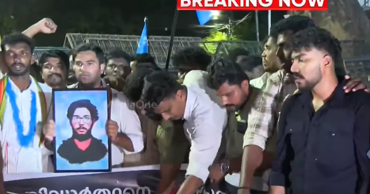 സിദ്ധാർത്ഥന്റെ വീട്ടിൽ നിന്ന് ഛായാചിത്രവുമായിരുന്നു പ്രതിഷേധം