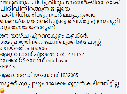 കലക്ടറുടെ ഫേസ്ബുക്ക് കുറിപ്പ്