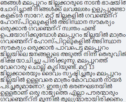 മറ്റ് ജില്ലകളിൽ ഗവ. ഹോസ്പിറ്റലുകളിൽ അടിസ്ഥാന സൗകര്യം ഒരുക്കാൻ ഗവ. സ്വന്തം ഫണ്ട് ഉപയോഗിക്കുമ്പോൾ മലപ്പുറം ജില്ലയിൽ മാത്രം ഗവ. ഹോസ്പിറ്റലുകളിൽ അടിസ്ഥാന സൗകര്യം ഒരുക്കാൻ പാവപെട്ട മലപ്പുറം ജില്ലയിലെ ജനങ്ങളുടെ അടുത്ത് നിന്ന് തെരുവിൽ ഭിക്ഷ യാചിച്ചു പിരിക്കുകയാണെന്നാണ് പ്രധാന വിമര്ശം. മലപ്പുറത്തെ ഇങ്ങനെ പിഴിയരുതെന്നും മലപ്പുറമെന്താ കേരളത്തില് അല്ലേയെന്നും ചിലര് ചോദിക്കുന്നു. സർക്കാർ ഫണ്ട് ഉപയോഗിച്ചാണ് എല്ലാ നാട്ടിലും സർക്കാർ ആശുപത്രികളിൽ ഉപകരണങ്ങൾ വാങ്ങാറ് . മലപ്പുറത്ത് മാത്രം കലക്ടർമാർ ജനങ്ങളിൽ നിന്ന് പിരിവെടുത്താണ് ഉപകരണങ്ങൾ വാങ്ങുന്നതെന്നും ചിലര് ചൂണ്ടിക്കാട്ടുന്നു.