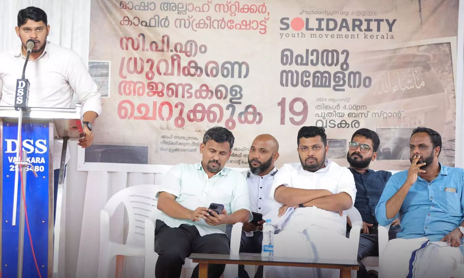|സി.പി.എമ്മിന്റെ വർഗീയ ധ്രുവീകരണ അജണ്ടകളെ ചെറുക്കുക എന്ന തലക്കെട്ടിലായിരുന്നു സോളിഡാരിറ്റി യൂത്ത് മൂവ്മെന്റിന്റെ പൊതുസമ്മേളനം