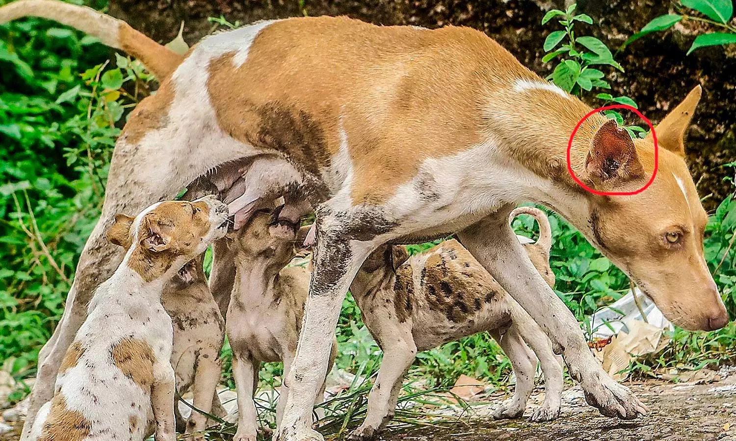 'മാതൃഭൂമി'യിൽ സീനിയർ ഫോട്ടോ ജേണലിസ്റ്റായ സാജൻ വി നമ്പ്യാർ ആണ് വന്ധ്യംകരിക്കപ്പെട്ട നായ കുഞ്ഞുങ്ങൾക്ക് മുലയൂട്ടുന്ന ചിത്രം ഫേസ്ബുക്കിൽ പങ്കുവച്ചത്. കോഴിക്കോട് ഫ്രാൻസിസ് റോഡിൽനിന്നാണ് ഈ കാഴ്ച. കഴിഞ്ഞ വർഷം കോർപറേഷൻ ആരോഗ്യ വിഭാഗം പിടിച്ചുകൊണ്ടുപോയി വന്ധ്യംകരിച്ചു വിട്ട നായയാണിതെന്നാണ് നാട്ടുകാർ പറയുന്നതെന്ന് സാജൻ പറയുന്നു. വന്ധ്യംകരിച്ചതിന്റെ അടയാളമായി സാധാരണ ചെയ്യാറുള്ള പോലെ ഈ നായയുടെ ചെവിയിലും 'വി' ആകൃതിയിൽ മുറിച്ചിട്ടുണ്ട്. പരിസരവാസികൾക്ക് ഏറെ പരിചയമുള്ള നായയാണിതെന്നും കഴിഞ്ഞ വർഷം വന്ധ്യംകരിച്ച ശേഷം തിരിച്ചുകൊണ്ടുവിട്ടതാണെന്നും നാട്ടുകാർ പറയുന്നു.