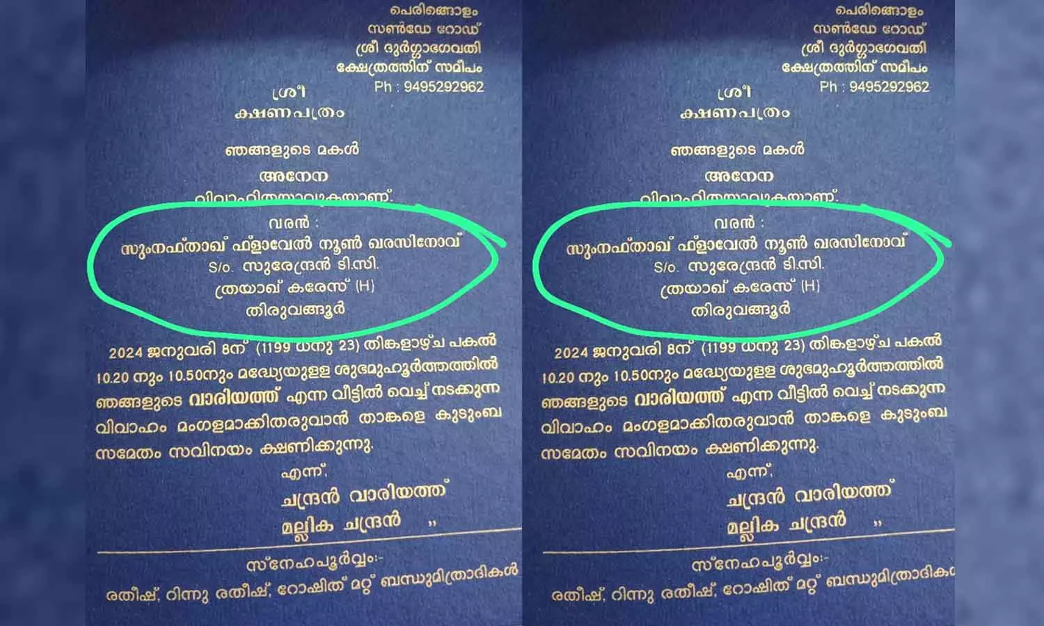'സുംനഫ്താഖ് ഫ്ളാവേൽ നൂൺ ഖരസിനോവ്'; കല്യാണക്കത്തിലെ വൈറൽ പേരിന് പിന്നിലെ കഥ