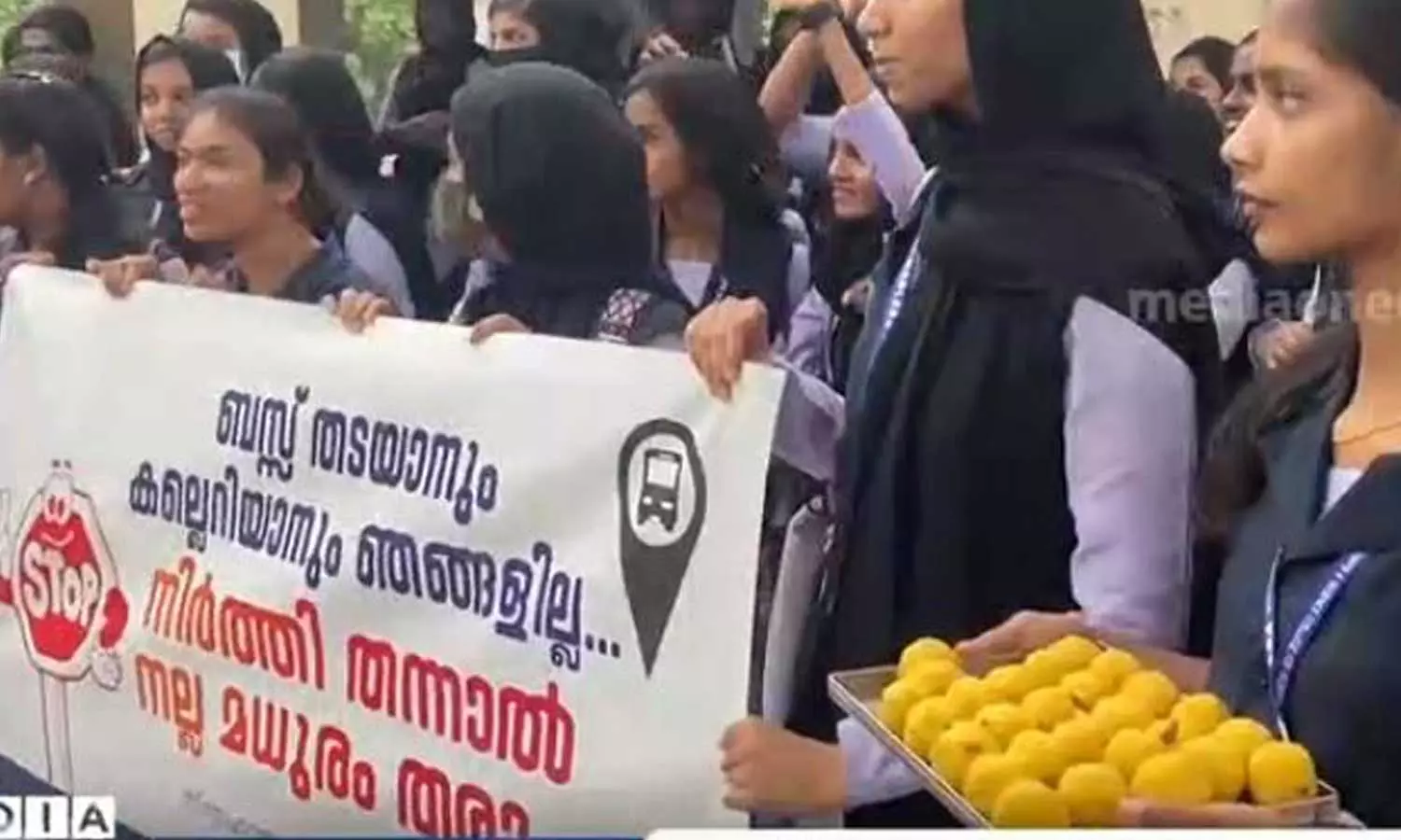 ബസ് സ്റ്റോപ്പിൽ നിർത്തുന്നില്ല; 'മധുരപ്രതികാരവുമായി' റോഡിലിറങ്ങി വിദ്യാർഥിനികൾ