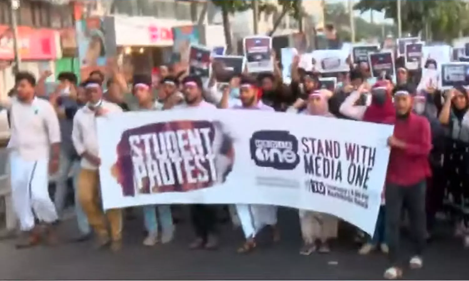 മീഡിയവണിന് കേന്ദ്രം ഏർപ്പെടുത്തിയ സംപ്രേഷണ വിലക്കിൽ പ്രതിഷേധിച്ച് കോഴിക്കോട് നഗരത്തിൽ വിദ്യാർഥികൾ പ്രതിഷേധ റാലി നടത്തി. 'മീഡിയാവണ്ണിനൊപ്പം' എന്ന ബാനറും പ്ലക്കാർഡുകളുമേന്തിയാണ് വിദ്യാർഥികളുടെ പ്രതിഷേധം.വിദ്യാർഥികൾക്ക് പുറമെ സമൂഹത്തിലെ വിവിധ മേഖലകളിലുള്ളവരും പ്രതിഷേധത്തിന്റെ സമാപനയോഗത്തിൽ പങ്കെടുക്കും.