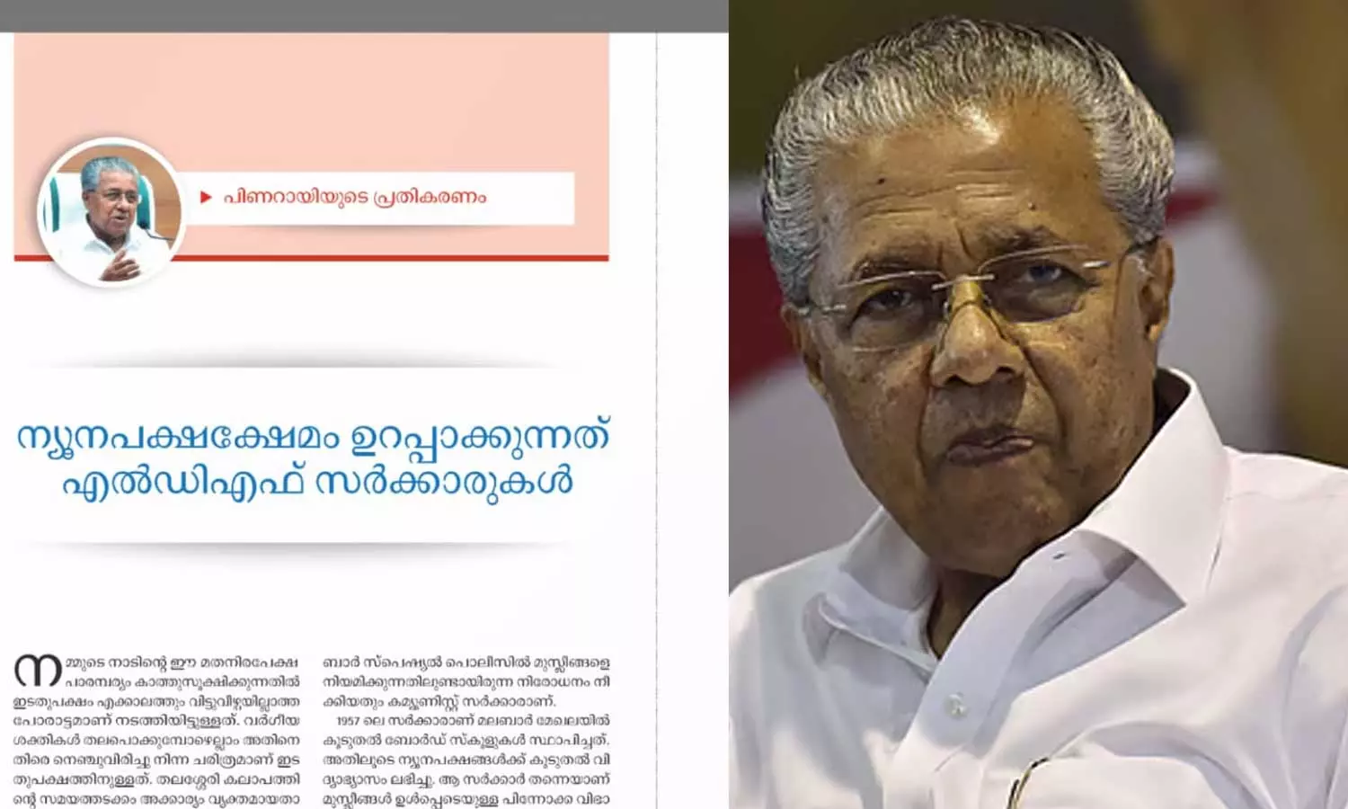 ഇടതുമുന്നണി ന്യൂനപക്ഷങ്ങളെ എല്ലാക്കാലത്തും സവിശേഷതയോടെ കണ്ടു. അവരുടെ ആശങ്ക കേൾക്കാനും പരിഹരിക്കാനും ഈ സർക്കാർ എന്നും തയ്യാറായിട്ടുണ്ടെന്നും മുഖ്യമന്ത്രി. ചിന്താ വാരികയിലാണ് മുഖ്യമന്ത്രിയുടെ ലേഖനം.