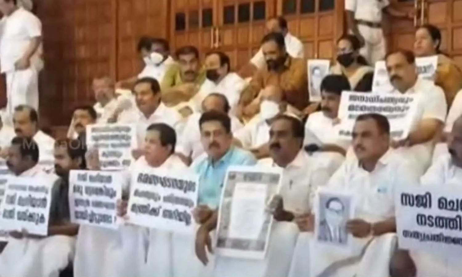 'സജി ചെറിയാനെ പുറത്താക്കണം'; പ്രതിപക്ഷ പ്രതിഷേധം,സഭ ഇന്നത്തേക്ക് പിരിഞ്ഞു