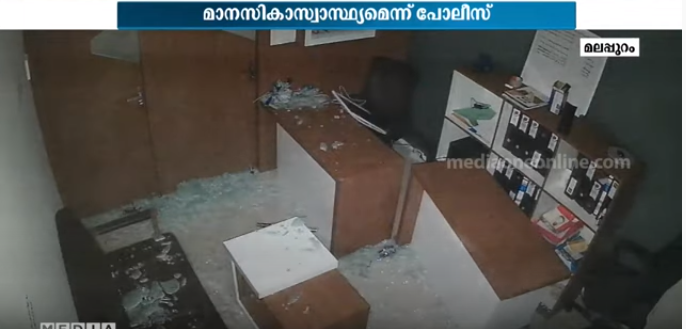 മലപ്പുറത്ത് മാനസികാസ്വാസ്ഥ്യമുള്ള യുവാവിന്റെ പരാക്രമം; നിർത്തിയിട്ട വാഹനമുപയോഗിച്ച് കടകള് ഇടിച്ചു തകർത്തു