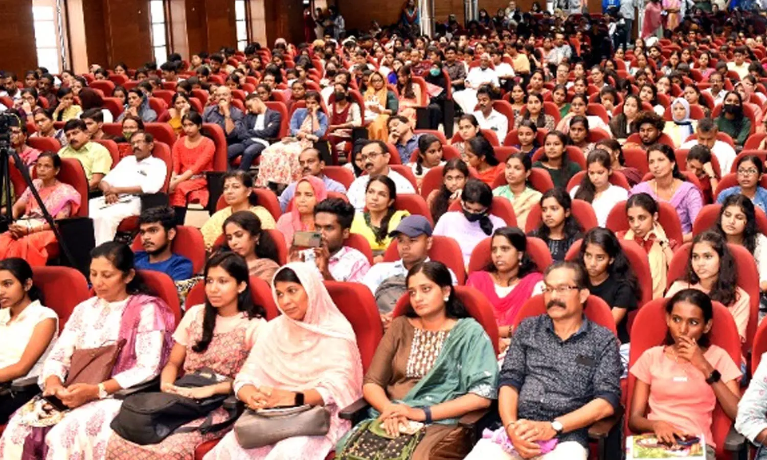 കൊച്ചി: പ്രതിഭകളെ ചേർത്തുപിടിച്ച്, കൂടുതൽ വിജയത്തിലേക്ക് വഴിതെളിച്ച് മാധ്യമത്തിന്റെ സ്നേഹാദരം. ജില്ലയിൽ നിന്ന് ഹയർസെക്കൻഡറി, വൊക്കേഷണൽ ഹയർസെക്കൻഡറി, ടെക്നിക്കൽ ഹയർസെക്കൻഡറി പരീക്ഷകളിൽ എല്ലാ വിഷയങ്ങൾക്കും എ പ്ലസ് നേടിയ വിദ്യാർഥികൾക്കും നൂറ് ശതമാനം വിജയം കൈവരിച്ച സ്കൂളുകൾക്കും മുഴുവൻ മാർക്കും കരസ്ഥമാക്കിയ പ്രതിഭകൾക്കും മാധ്യമവും പ്രമുഖ വിദ്യാഭ്യാസ സ്ഥാപനമായ വിദ്യാഭാരതി ഗ്രൂപ്പ് ഓഫ് ഇൻസ്റ്റിറ്റ്യൂഷൻസും ചേർന്ന് ഒരുക്കിയ പ്രതിഭകൾക്ക് ആദരം പരിപാടി നിറഞ്ഞുകവിഞ്ഞ സദസ്സിനാൽ ശ്രദ്ധേയമായി. അറുന്നൂറിലധികം വിദ്യാർഥികളും മാതാപിതാക്കളും അധ്യാപകരുമാണ് എറണാകുളം ടൗൺഹാളിൽ നടന്ന പരിപാടിയിലേക്ക് ഒഴുകിയെത്തിയത്.
