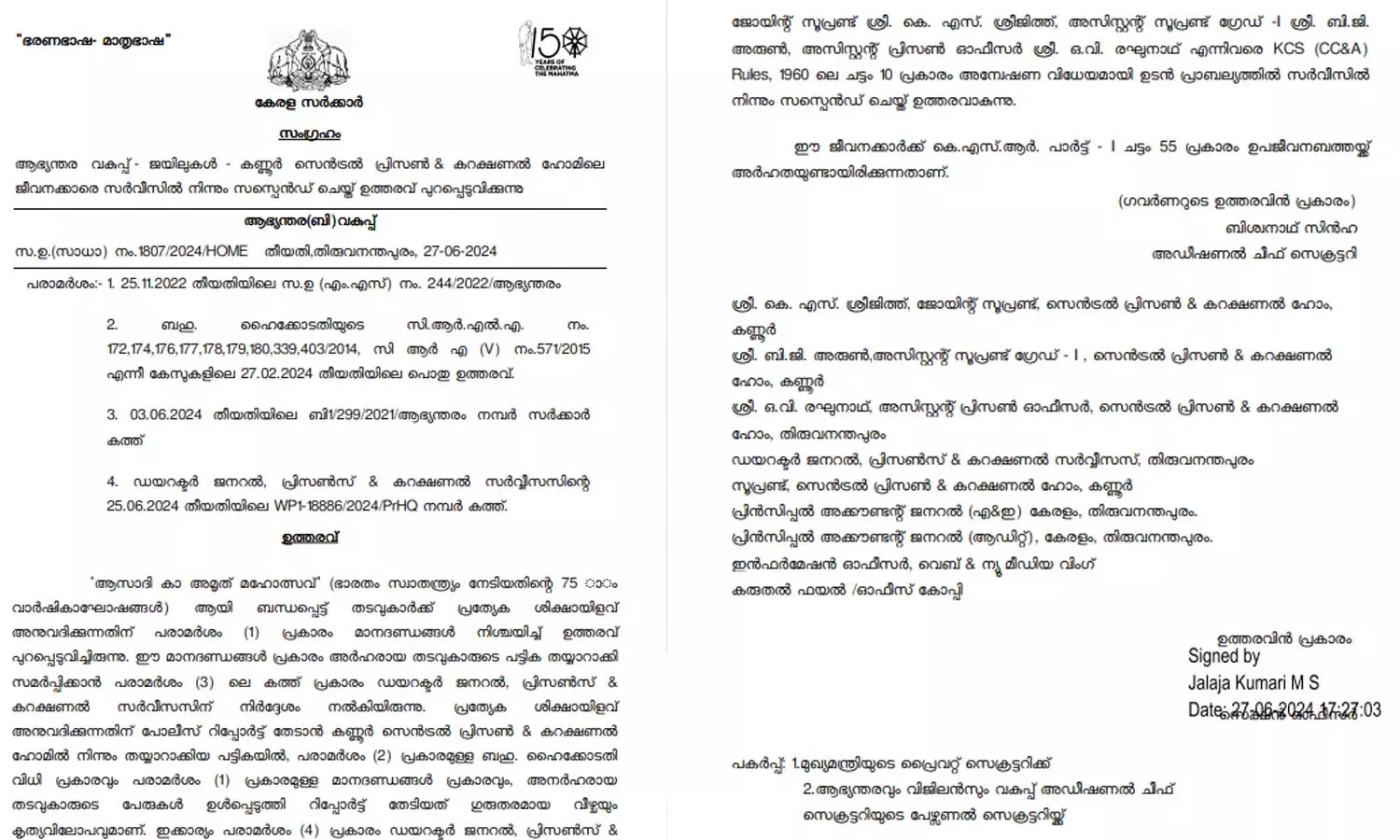 |മൂന്ന് ഉദ്യോഗസ്ഥരെയാണ് സസ്പെൻഡ് ചെയ്തത്