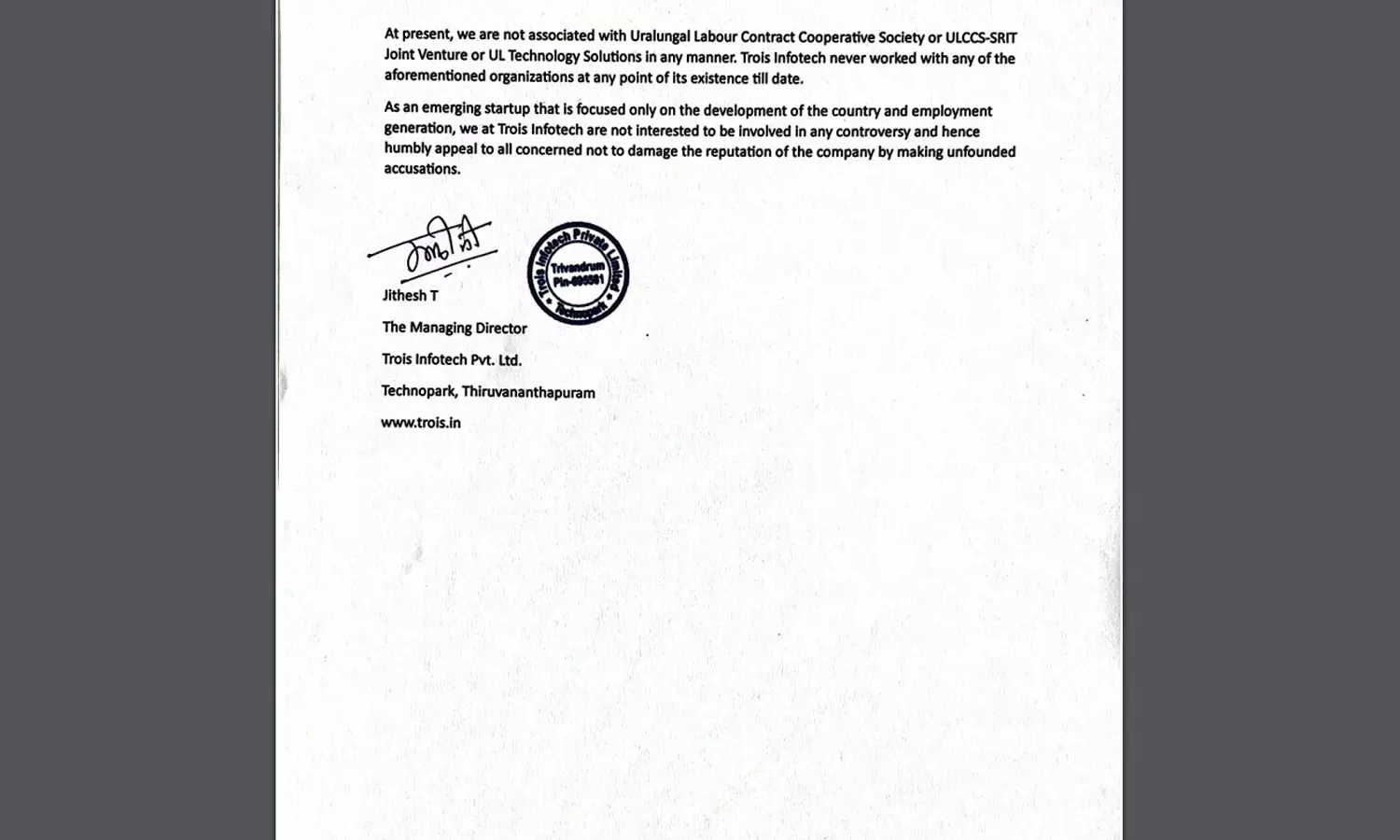 SRIT- ഊരാളുങ്കൽ ബന്ധം സമ്മതിച്ച് ട്രോയിസ്: ബിഡ്ഡിങ്ങിൽ പങ്കെടുക്കാൻ കത്ത് നൽകി