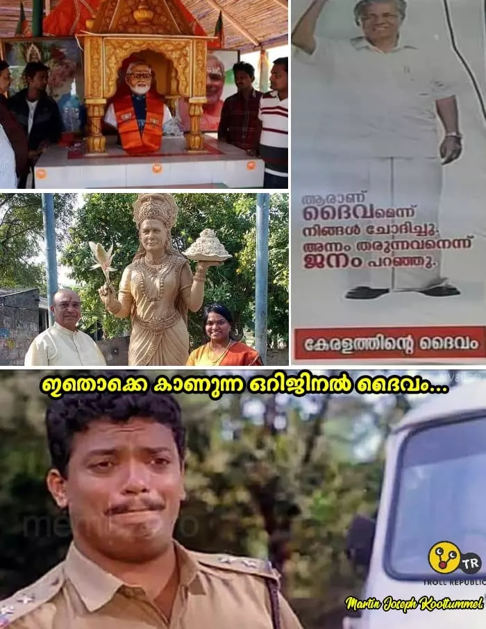 'മലയാളികള്ക്ക് കിറ്റ് കൊടുത്ത ദൈവം': പിണറായി വിജയന്റെ ഫ്ലക്സിനെതിരെ ട്രോള് പൂരം