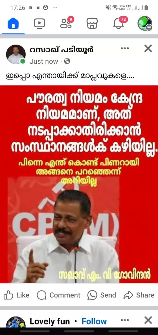 |'ഇപ്പോ എന്തായ്ക്ക് മാപ്ലാവുകളെ' എന്ന മേൽകുറിപ്പോടെയാണ് ചിത്രം പ്രചരിപ്പിക്കുന്നതെന്നും പരാതിയിൽ പറഞ്ഞു