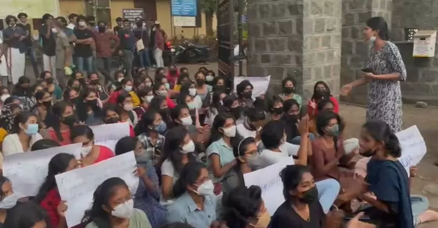 ഹോസ്റ്റലിൽ പ്രവേശിക്കുന്നതിനുള്ള സമയ പരിധി നീട്ടണം; റോഡ് ഉപരോധിച്ച് വിദ്യാർഥിനികളുടെ പ്രതിഷേധം