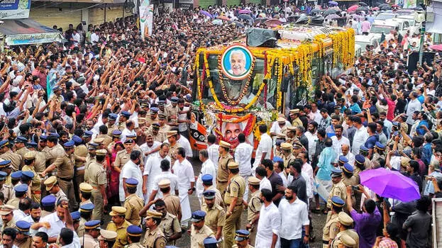 ഉമ്മന്ചാണ്ടിയുടെ മൃതദേഹവും വഹിച്ചുകൊണ്ടുള്ള വിലാപയാത്ര