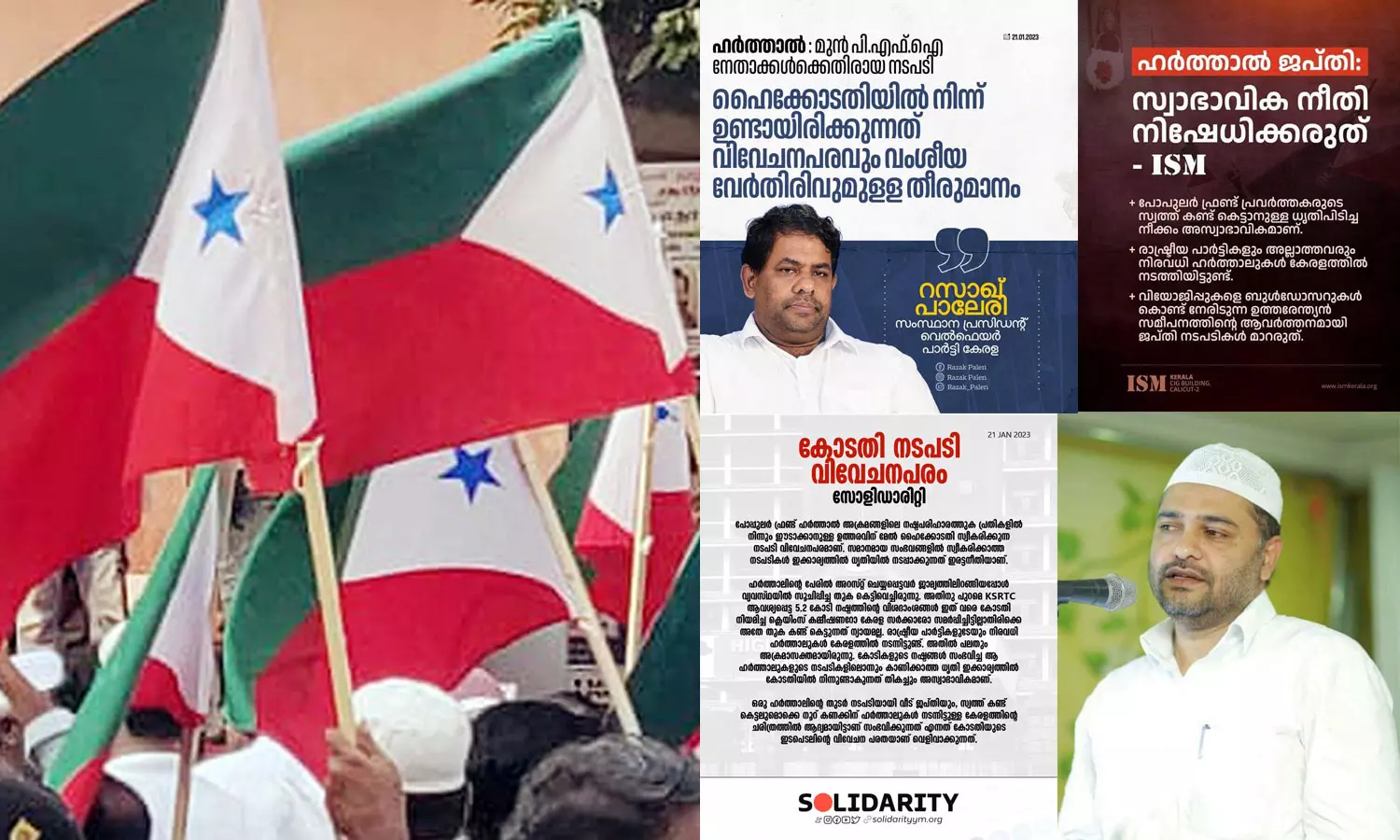 ഹർത്താൽ: പി.എഫ്.ഐ നേതാക്കളുടെ സ്വത്ത് കണ്ടുകെട്ടലിനെതിരെ പ്രതിഷേധവുമായി വിവിധ സംഘടനകൾ