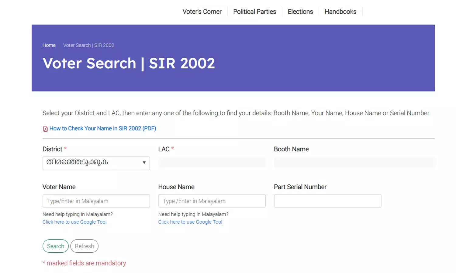2002ലെ എസ്ഐആർ വോട്ടര് പട്ടികയില് പേര് ഉള്പ്പെട്ടിട്ടുണ്ടോ എന്ന് എങ്ങനെ പരിശോധിക്കാം: