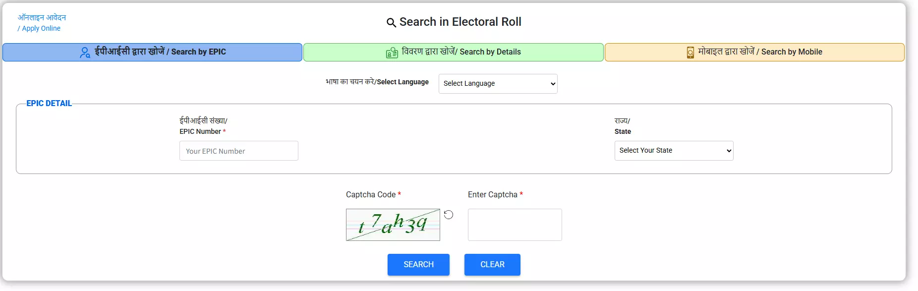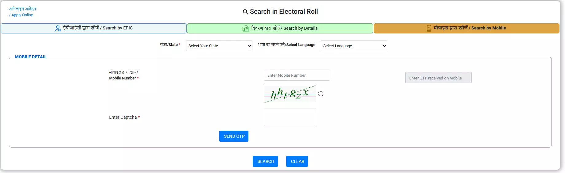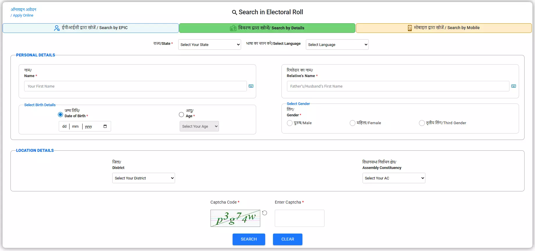 വോട്ടര് ഐഡി കാര്ഡ് നമ്പര് ഉപയോഗിച്ചോ, വ്യക്തിഗത വിവരങ്ങള് ഉപയോഗിച്ചോ, രജിസ്റ്റര് ചെയ്ത മൊബൈല് നമ്പര് ഉപയോഗിച്ചോ വിവരങ്ങള് പരിശോധിക്കാം