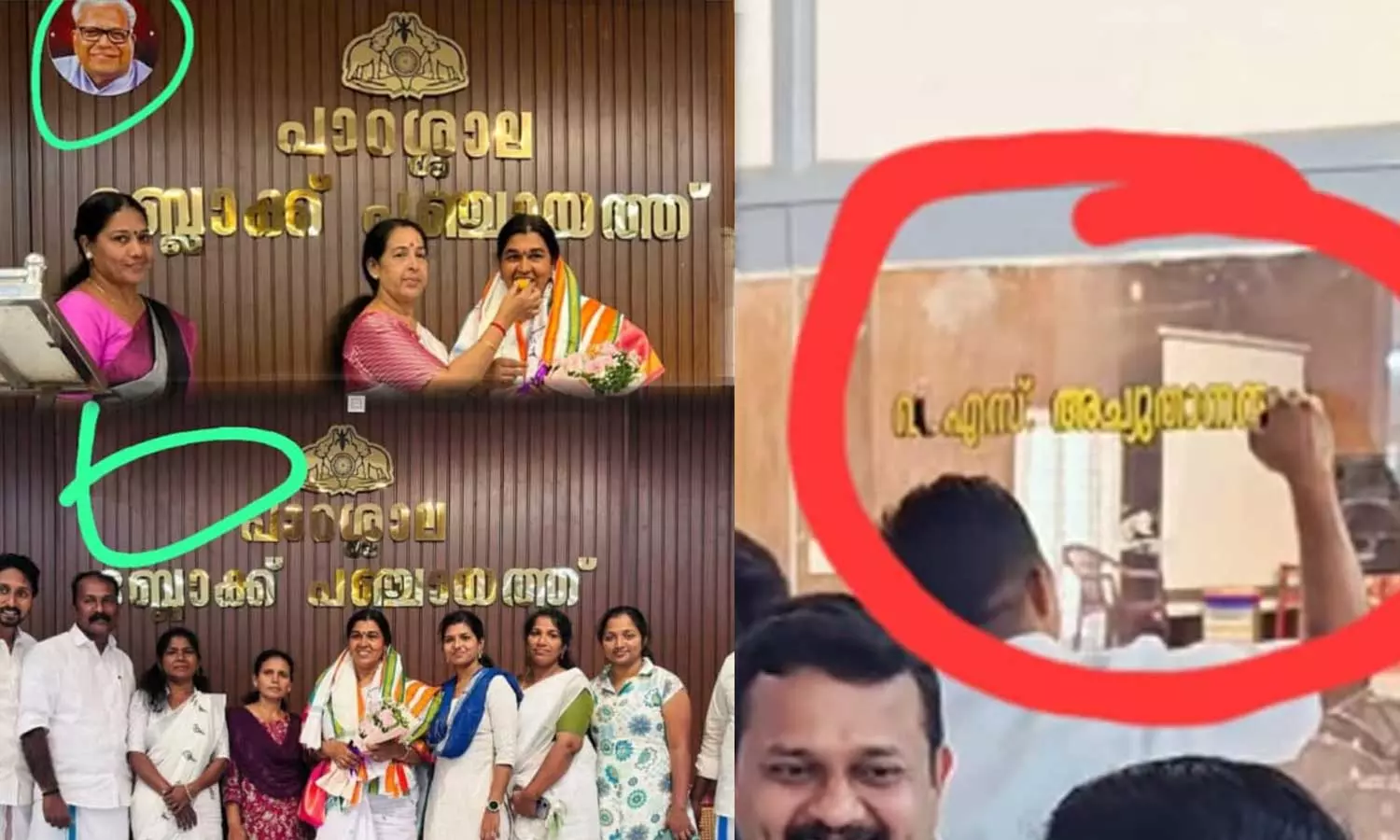 പാറശാല ബ്ലോക്ക് പഞ്ചായത്ത് കോൺഫറൻസ് ഹാളിലെ വി.എസിന്റെ പേരും ചിത്രവും ചുരണ്ടി മാറ്റി; പ്രതിഷേധവുമായി സിപിഎം