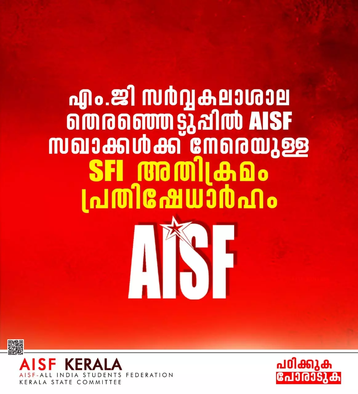 എസ്.എഫ്.ഐയും ആര്.എസ്.എസും തമ്മിലെന്തു വ്യത്യാസം? എം.ജി സര്വകലാശാല സംഘര്ഷത്തില് പ്രതിഷേധവുമായി എ.ഐ.എസ്.എഫ്