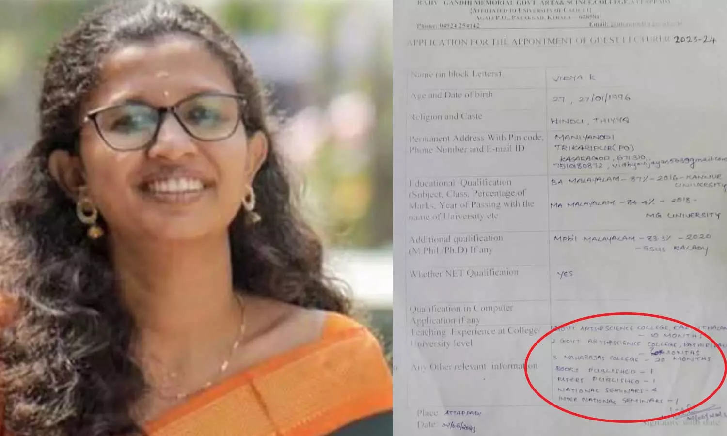 '20 മാസം മഹാരാജാസ് കോളജിൽ ജോലി ചെയ്തു'; കെ.വിദ്യ ബയോഡാറ്റ തയ്യാറാക്കിയത് സ്വന്തം കൈപ്പടയില്