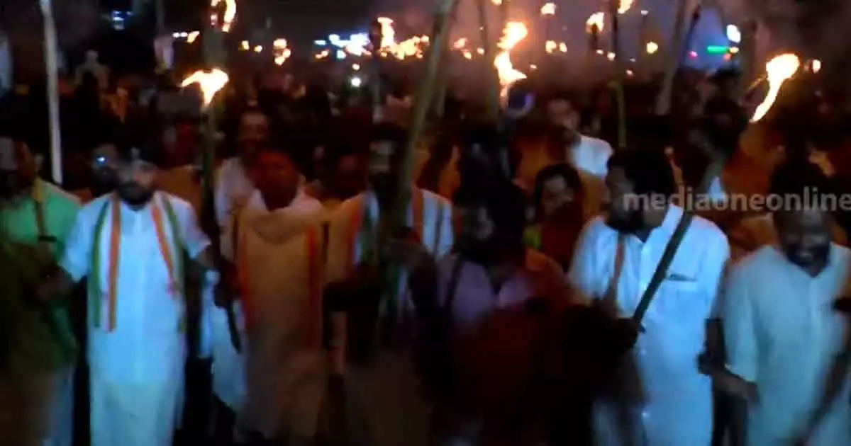 തിരുവനന്തപുരം: രാഹുല് ഗാന്ധിയെ എം.പി സ്ഥാനത്ത് നിന്ന് അയോഗ്യനാക്കിയതില് പ്രതിഷേധിച്ച് യൂത്ത് കോണ്ഗ്രസ് പ്രവര്ത്തകര് രാജ്ഭവനിലേക്ക് നൈറ്റ് മാര്ച്ച് നടത്തി. യൂത്ത് കോണ്ഗ്രസ് ദേശീയ അധ്യക്ഷന് ബി.വി ശ്രീനിവാസ് മാര്ച്ച് ഉദ്ഘാടനം ചെയ്തു. പ്രതിപക്ഷ നേതാവ് വി.ഡി സതീശനും മാർച്ചിൽ പങ്കെടുത്തു.