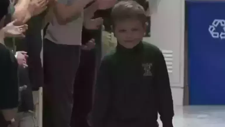 Six year old got welcomed back at his school with a standing ovation after beating leukemia..